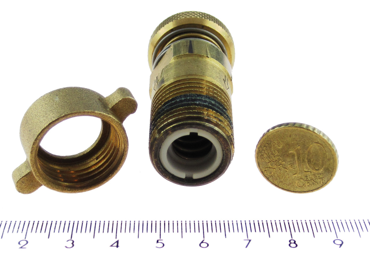 1/2" Gewinde. Der Außendurchmesser (ungefähr 20 mm) entspricht dem einer 10-Eurocent-Münze.