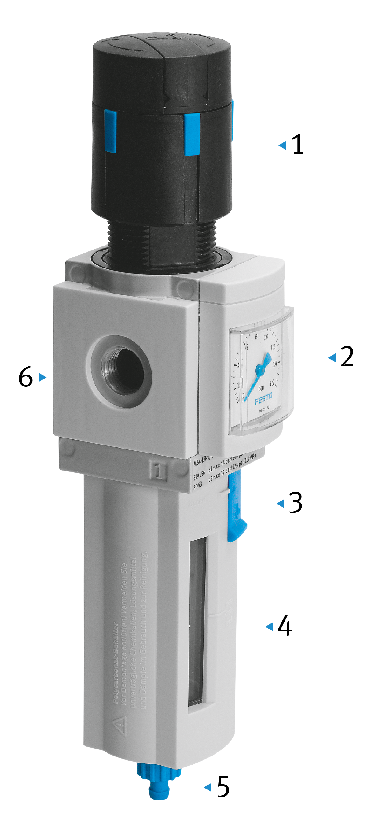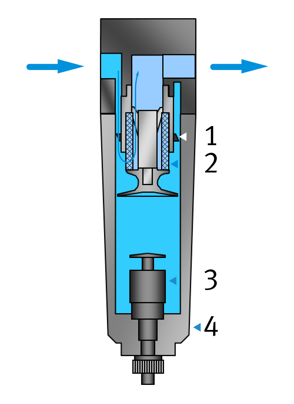 und die Filtereinsätze werden von innen nach außen durchströmt. Siehe auch Erläuterungen zu den Mikrofiltern im Kapitel "Druckluffilter"