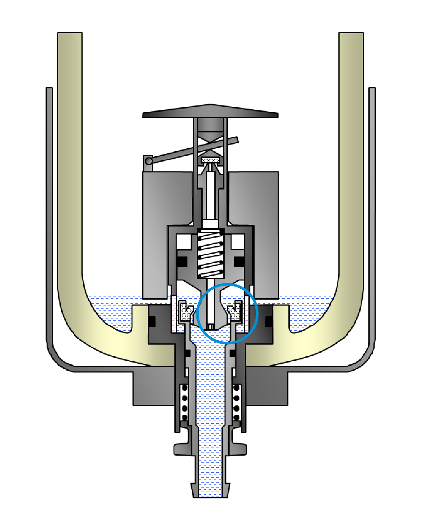 der Ablassdichtung und dem Automatikkolben | 7 | abfließen kann. Nach dem Loslassen der manuellen Betätigung sorgt die Rückstellfeder für das Schließen des Ablasses.