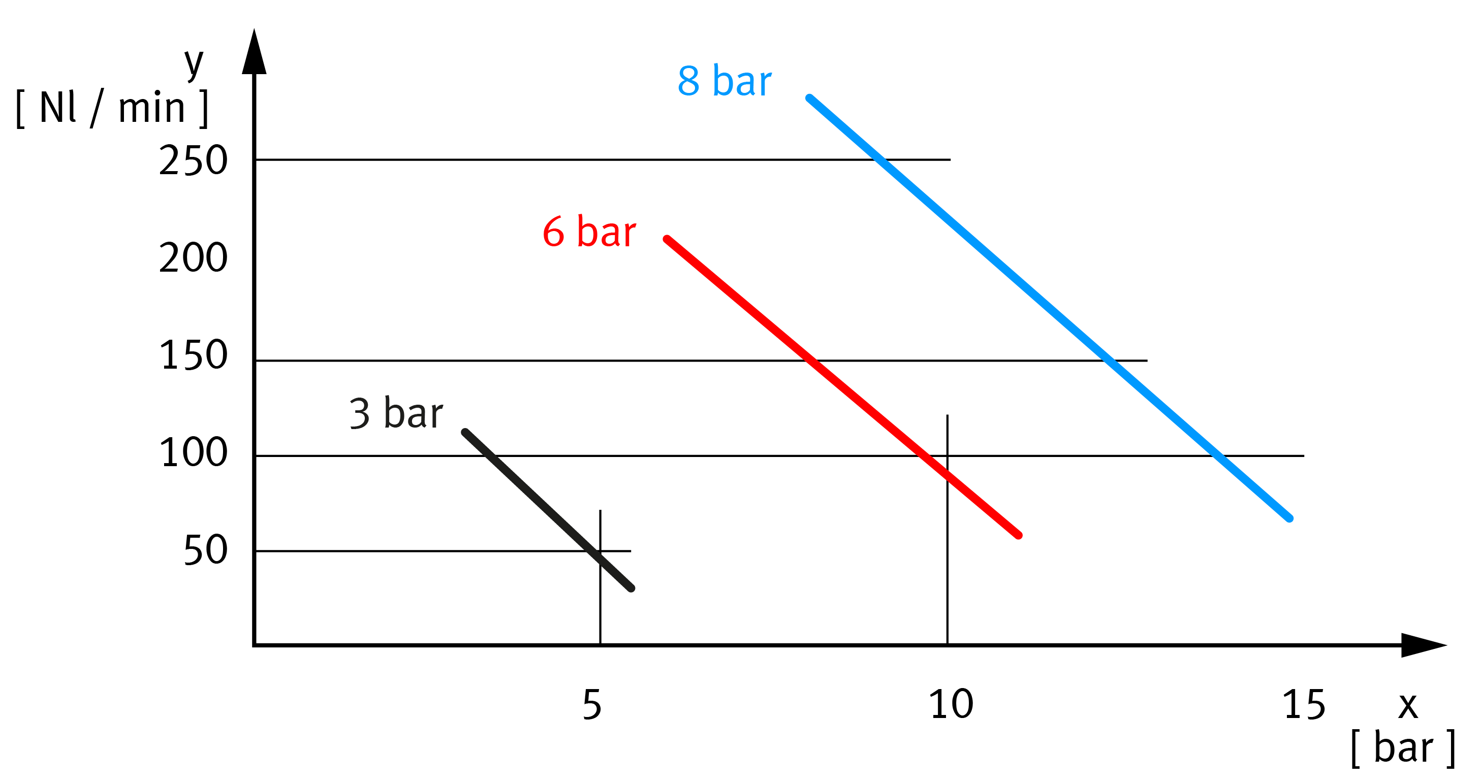 pR soll maximaler Betriebsdruck sein ( Druckregler ist ganz aufgedreht, pR = p1 )