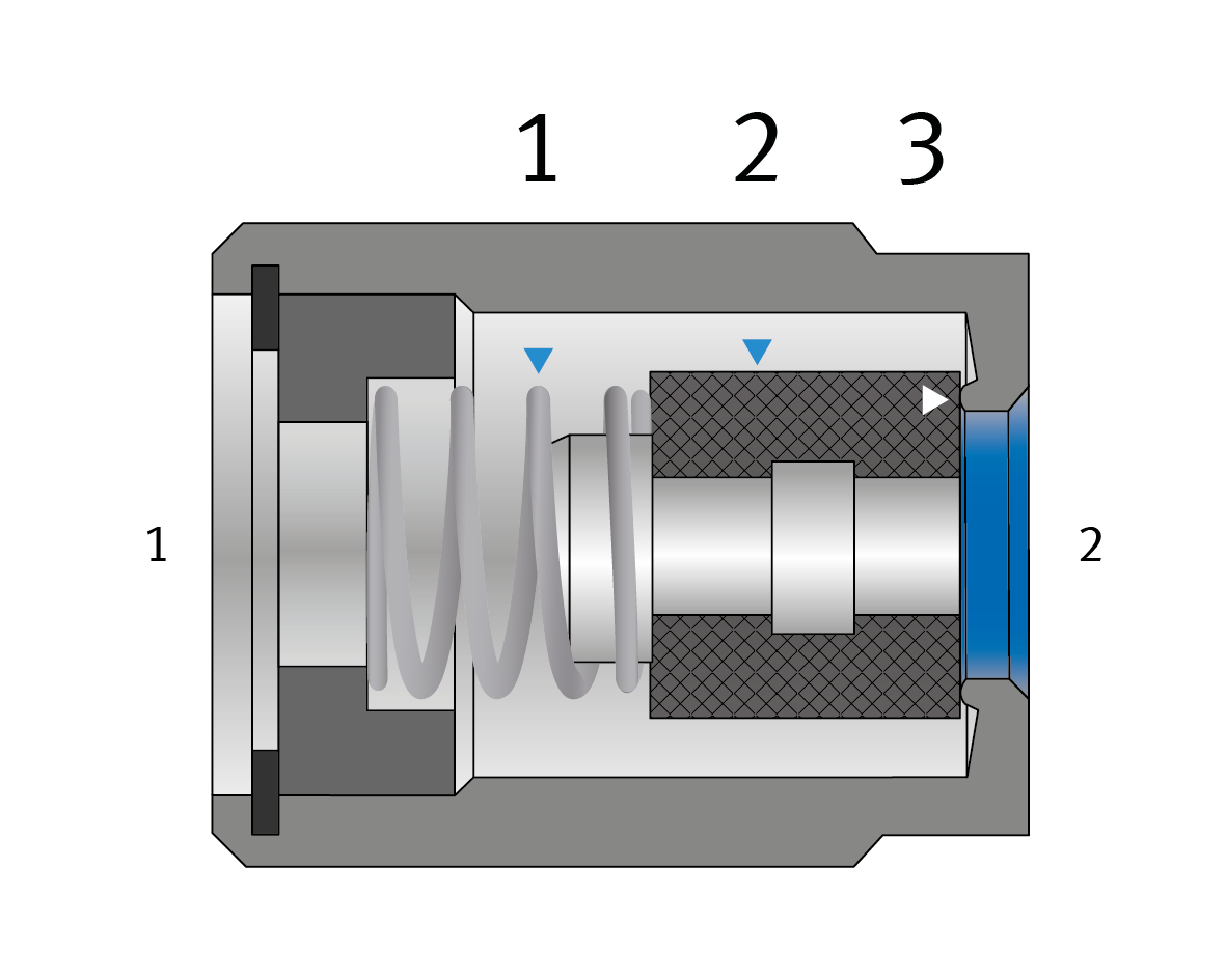 Allerdings sind diese zusätzlichen Kräfte sehr gering und werden deshalb von den Herstellern auch nicht separat angegeben. Das Ventil schaltet in Durchflussrichtung frei, sobald der Druck in dieser Richtung am Dichtungselement eine Kraft erzeugt, die größer ist als die Federkraft.