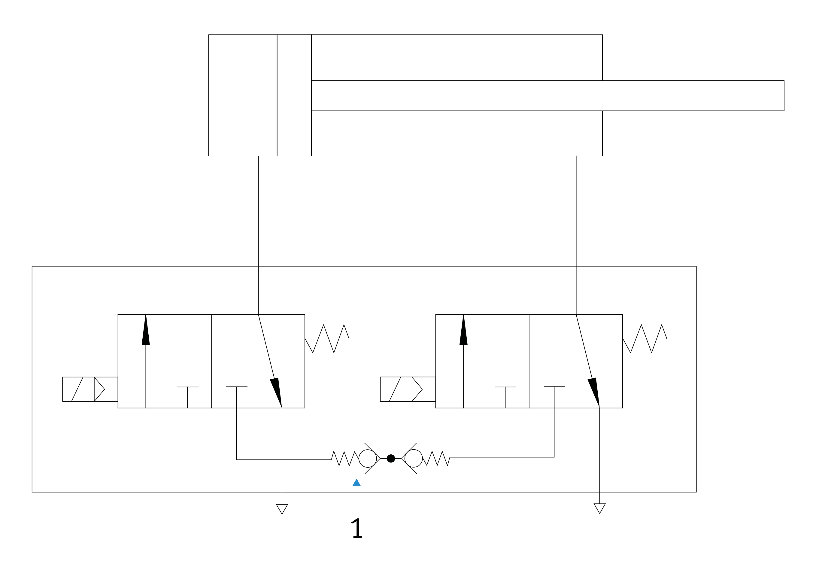 In einem Notfall würden die beiden Ventile das Abströmen der Luft aus den Zylinderkammern verhindern und der Zylinder in der gegenwärtigen Position verbleiben.