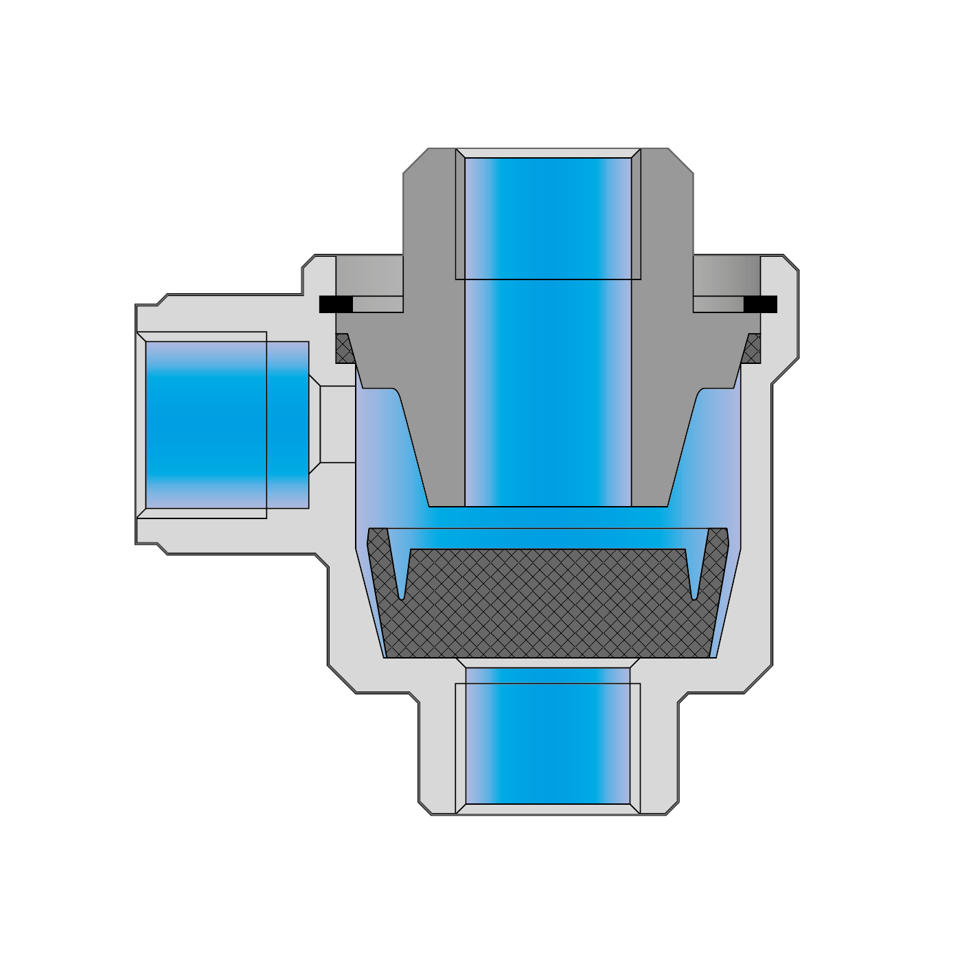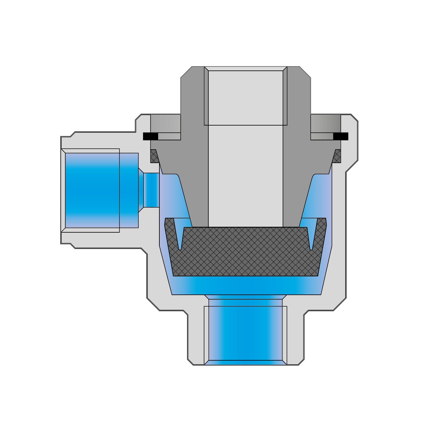 Im Grunde funktioniert es wie ein Rückschlagventil, bei dem die Luft in Sperrstellung seitlich ins Freie geleitet wird.